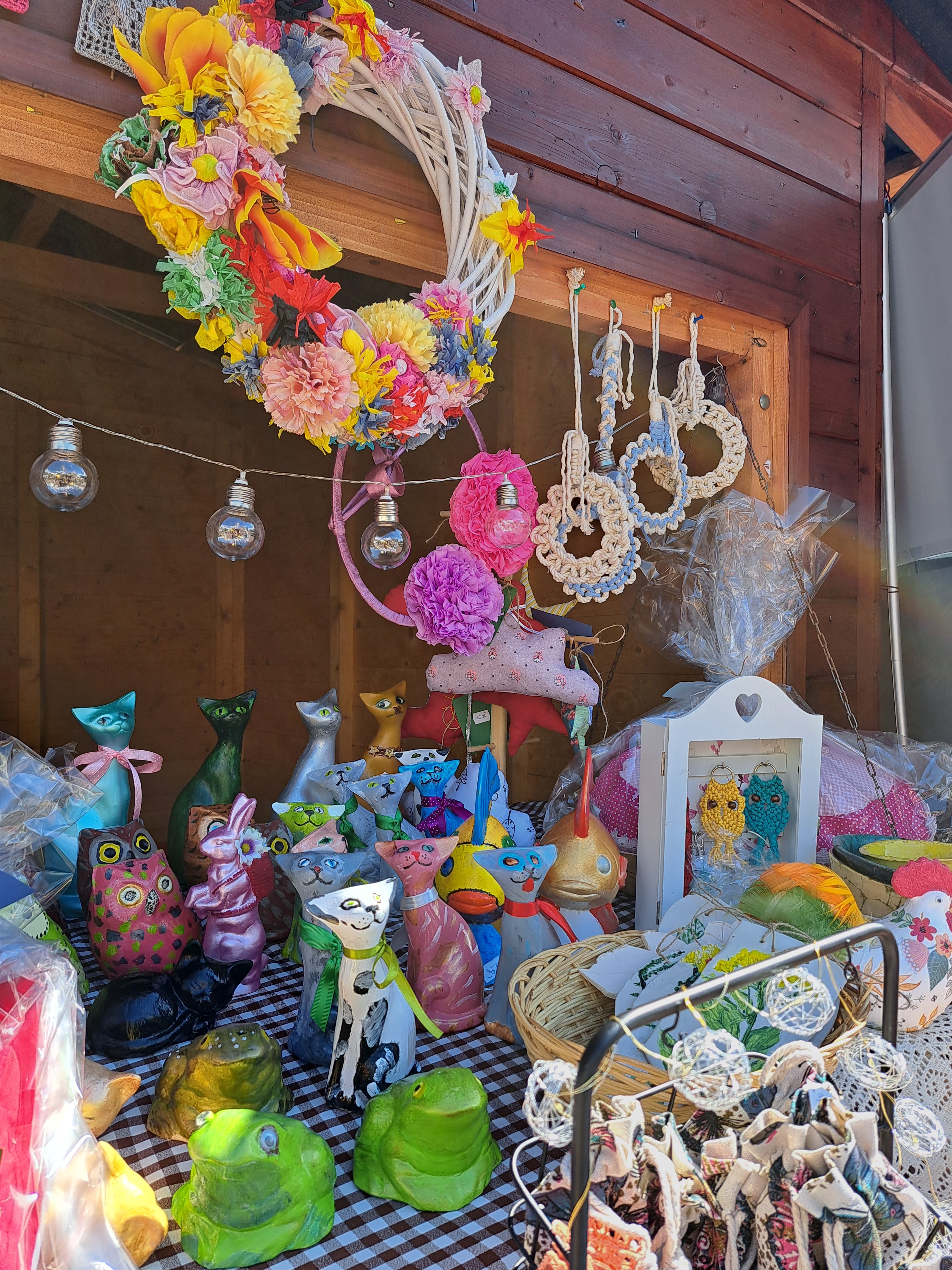 Na stoisku wśród wystawionych przedmiotów znalazło się dużo ceramiki - od mis i miseczek, po figurki kotów, pingwinów, sów i żab. Seniorzy pomyśleli także o przygotowaniu przedmiotów nieco bardziej użytecznych jak materiałowe torby, worki i plecaki, ręcznie zwijane woskowe świece, zapachowe lawendowe woreczki do szafy, wykończone sznurkiem podkładki pod gorące kubki, etui oraz stojaki na telefon.