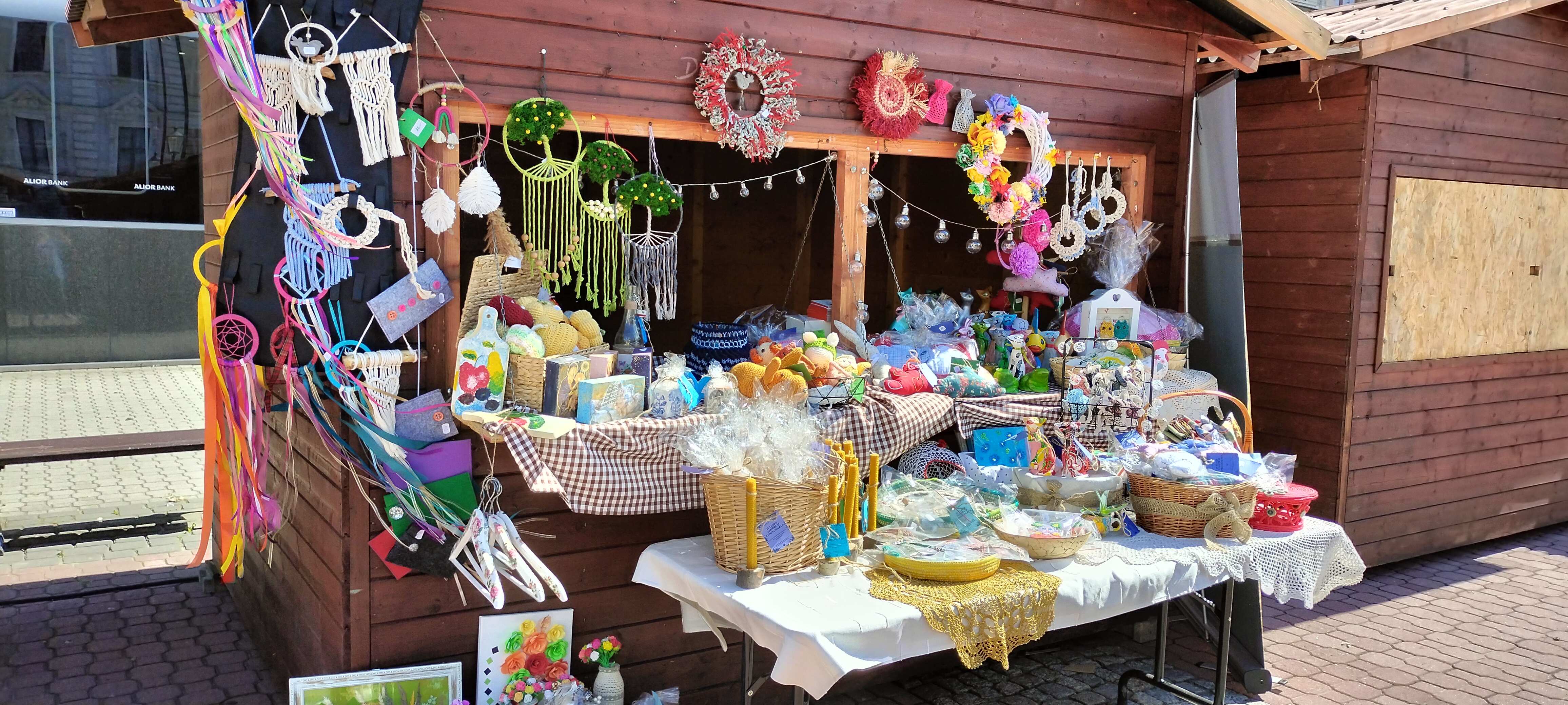 Dla najmłodszych oprócz zrobionych na szydełku pluszaków, znalazły się bawełniane mini poduszeczki - gwiazdeczki i chmurki. Na stoisku ponadto nie brakowało łapaczy snów, obrazów malowanych na szkle, ozdobnych wiklinowych wianków, drewnianych ikon wykonanych techniką decoupage.