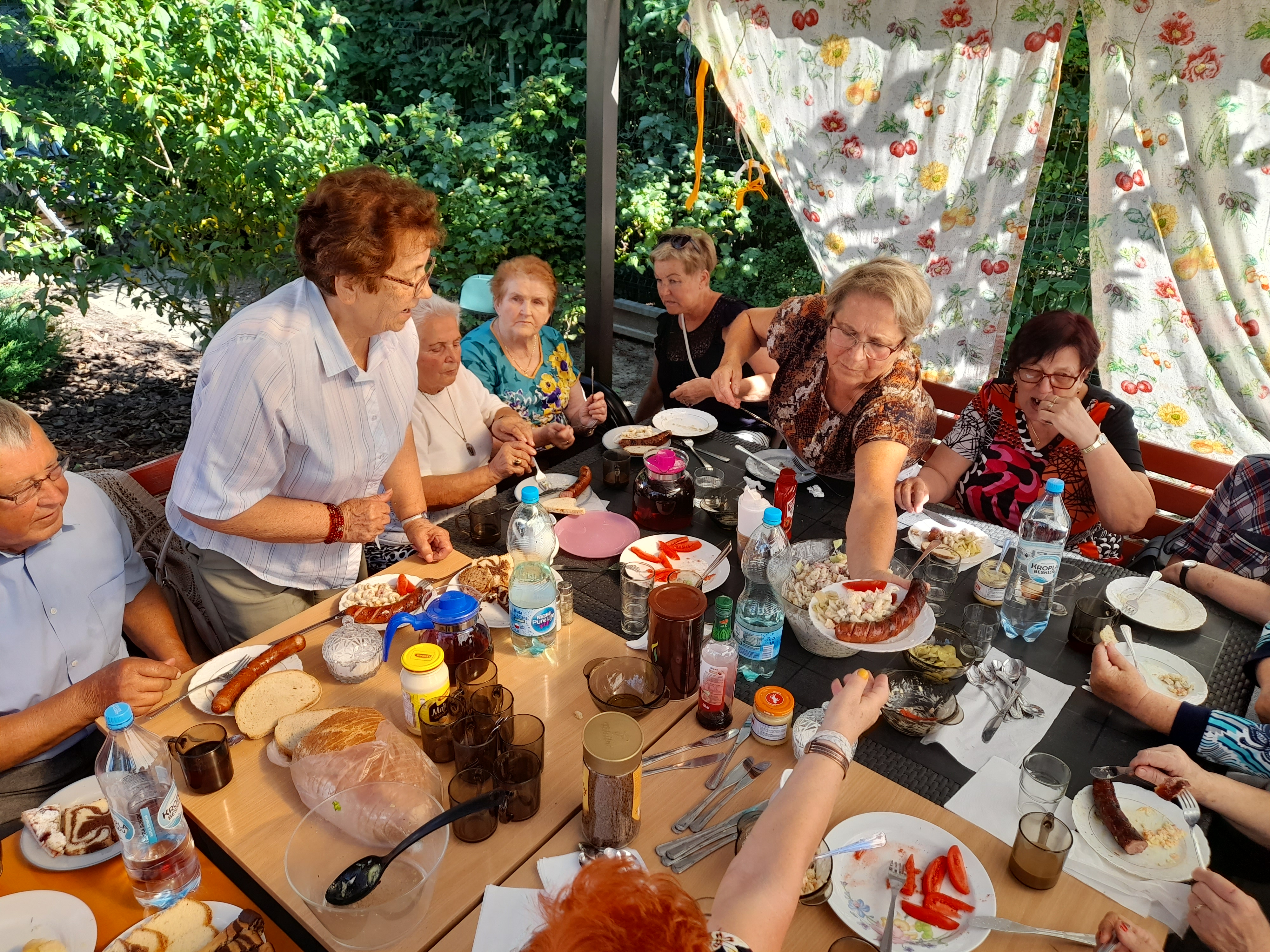Klubowicze z Komorowic lato spędzili głównie w swojej altance w ogrodzie. Prowadzona hortikuloterapia była bardzo intensywna gdyż prace ogrodowe wymagały w tym okresie dużo większego zaangażowania. Był to również czas przygotowywania zdrowych, kolorowych soków owocowych i kompotów, a promując postawę proekologiczną Seniorzy nauczyli się zwijać własnoręcznie świece z więzy pszczelej.