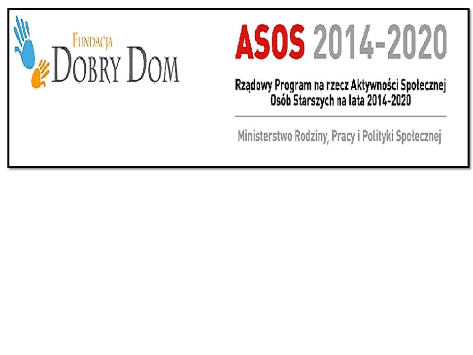 Składamy szczególne podziękowania przedstawicielom Fundacji „Dobry Dom” za zakwalifikowanie naszych Seniorów do udziału w Projekcie w tegorocznej edycji Programu ASOS. Dla Osób Starszych dodatkowe aktywności są wielką szansą rozwoju osobistego.