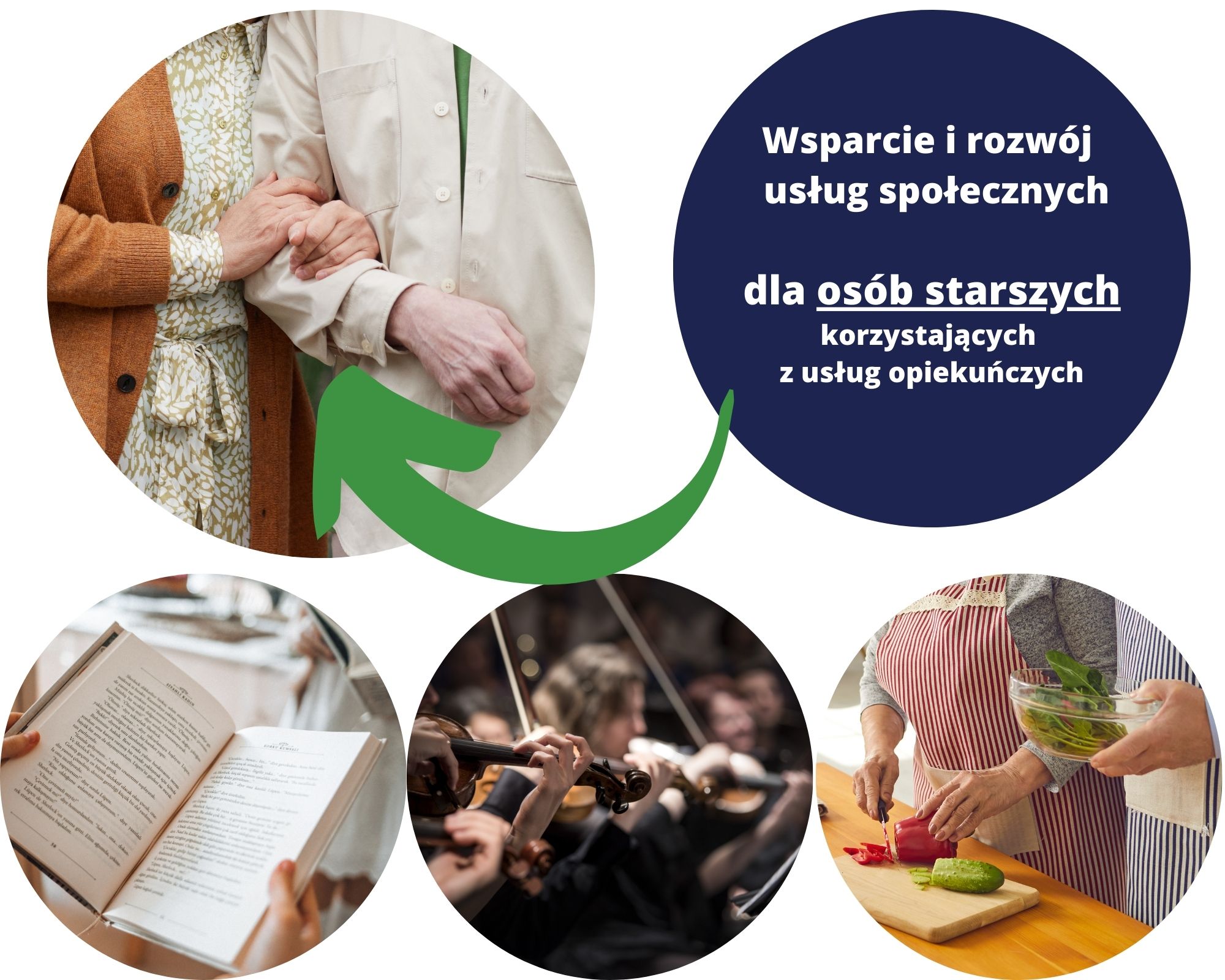 - Wsparcie i rozwoju usług społecznych dla osób starszych korzystających z usług opiekuńczych;