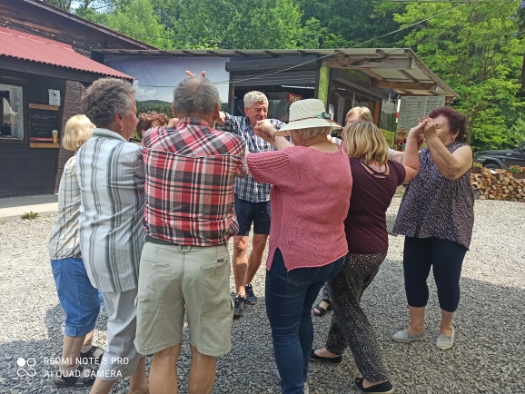 Seniorzy przede wszystkim świetnie bawili się w swoim towarzystwie a za ich radosne nastroje odpowiedzialny był także Zbój Heniu, który był wodzirejem – porywał do tańca, rozbawiał góralskimi kawałami i anegdotami. Młoda Góralka pięknie śpiewała i zachęcała do wspólnych tańców.